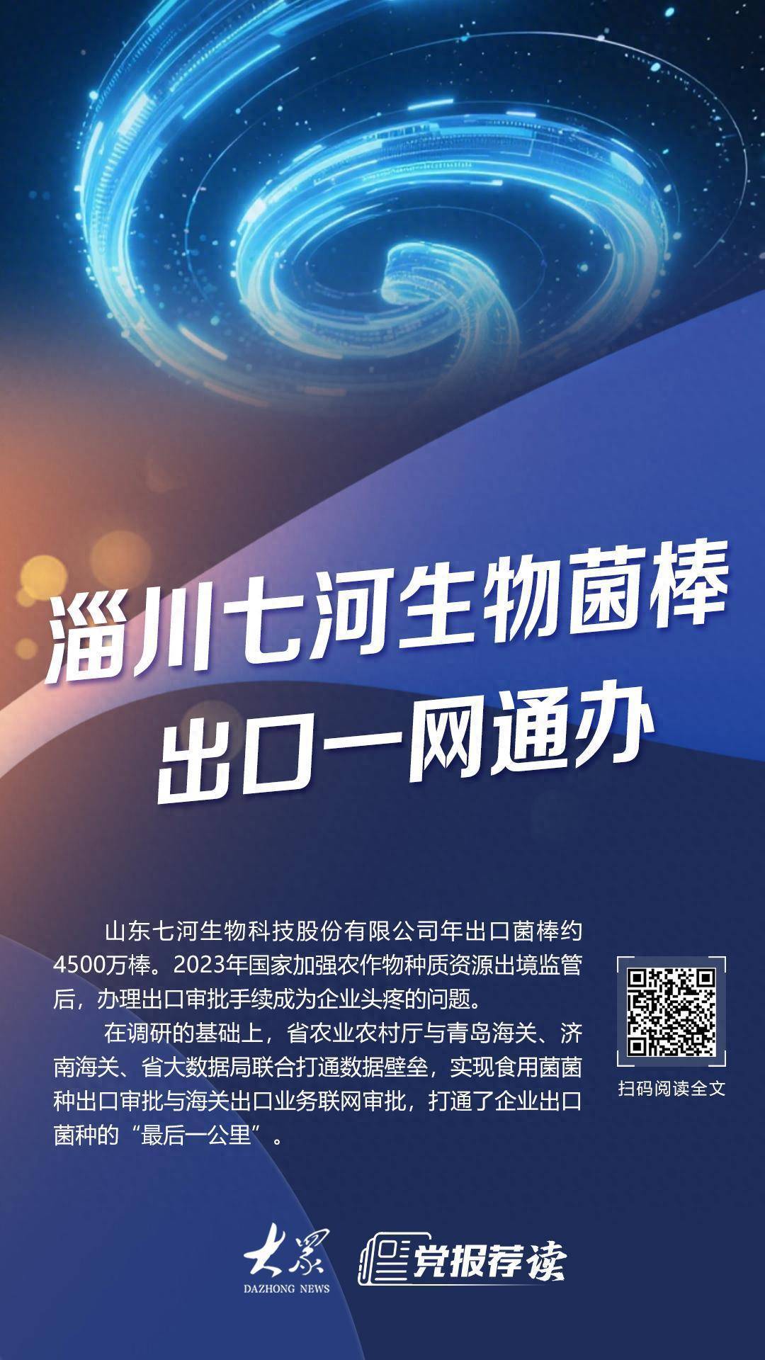怎么解决?在调研的基础上,省农业农村厅与青岛海关、济南海关、省大数据局联合打通数据壁垒,实现食用菌菌种出口审批与海关出口业务联网审批, 打通了企业出口菌种的“最后一公里”。